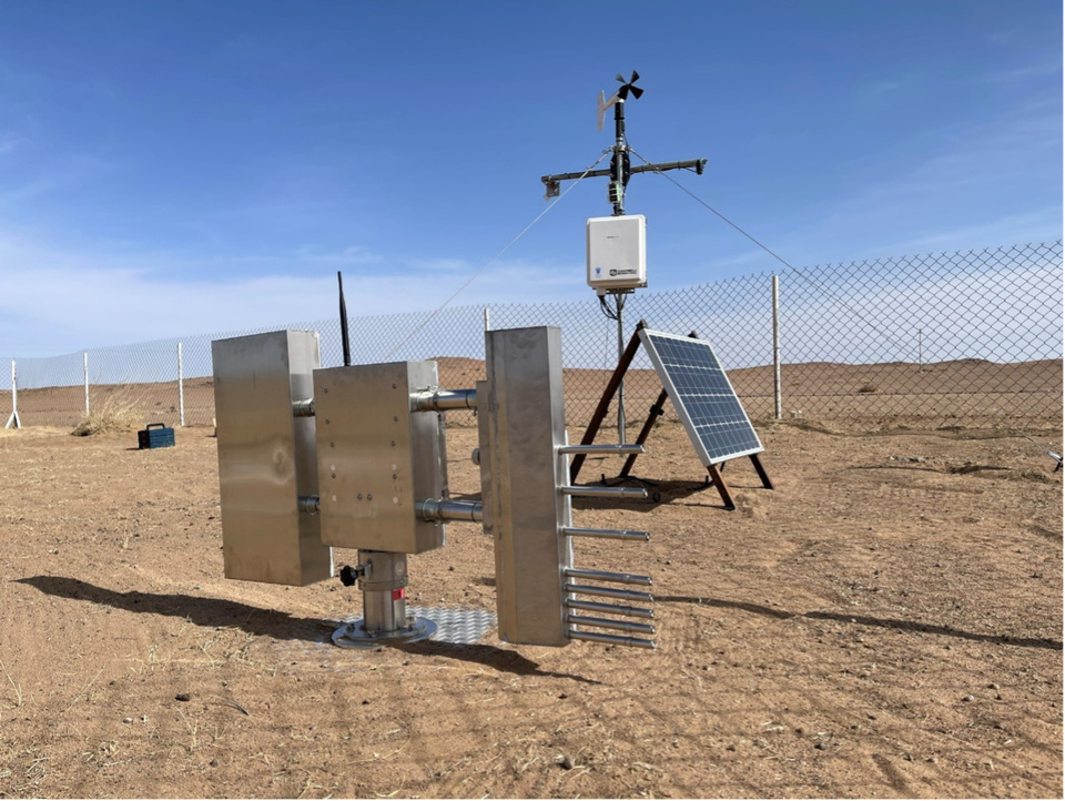 特許化した無指向飛砂量計測装置の設置例(モンゴル・ホルト)