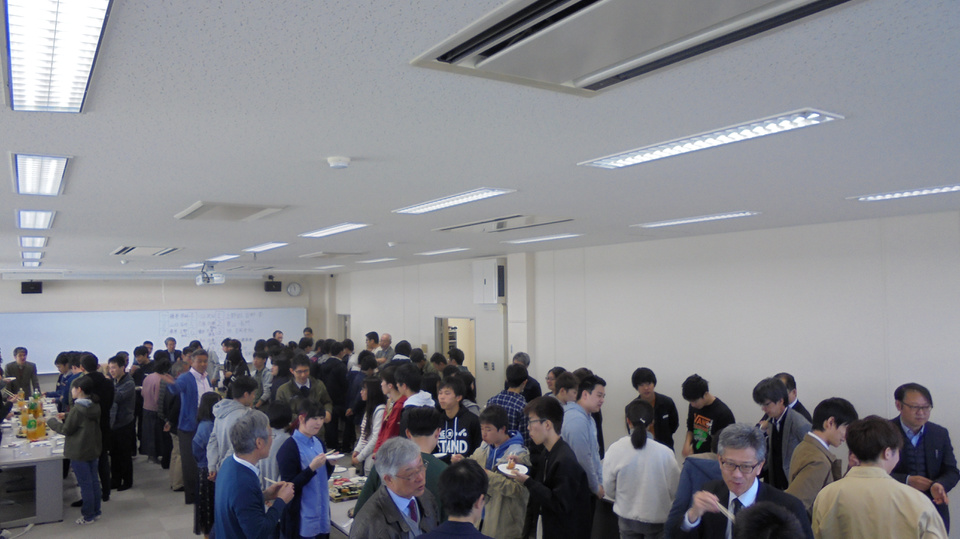 チューター教員と学生がグループになって、昼食を兼ねて、新入生の歓迎会を行ないました。お寿司やオードブル、お茶やジュース、お菓子などを食べながら、自己紹介をしたり、チューターや学生との連絡先の交換を行ないました。