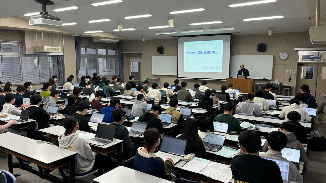 令和6年4月3日(水)に、令和6年度新入生オリエンテーションを実施しました。大学生活の4年間を見据えたコース分属・研究室分属、パソコンを用いたメール設定やMoodleの使い方などを学びました。また、4月4日(木)には、カリキュラムの説明・履修計画などを学びました。