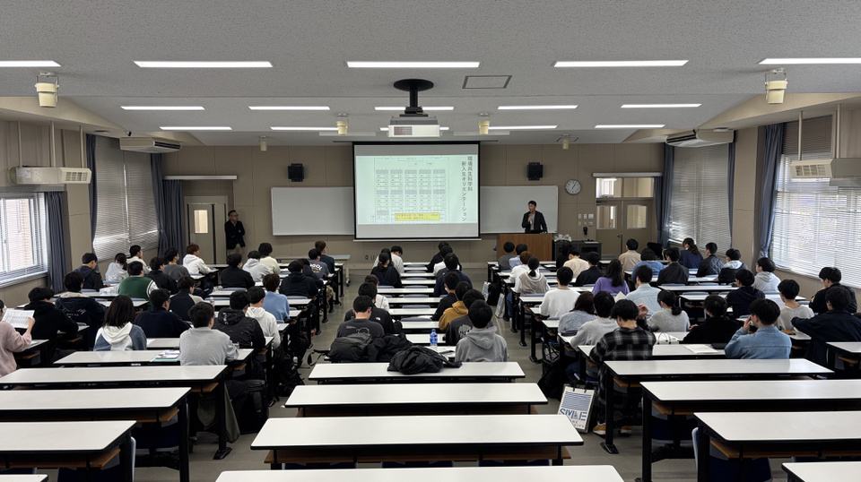 令和7年4月3日(木)に、令和7年度新入生オリエンテーションを実施しました。大学生活の4年間を見据えたコース分属・研究室分属、パソコンを用いたメール設定やMoodleの使い方などを学びました。また、4月4日(金)には、カリキュラム・履修計画などを学びました。