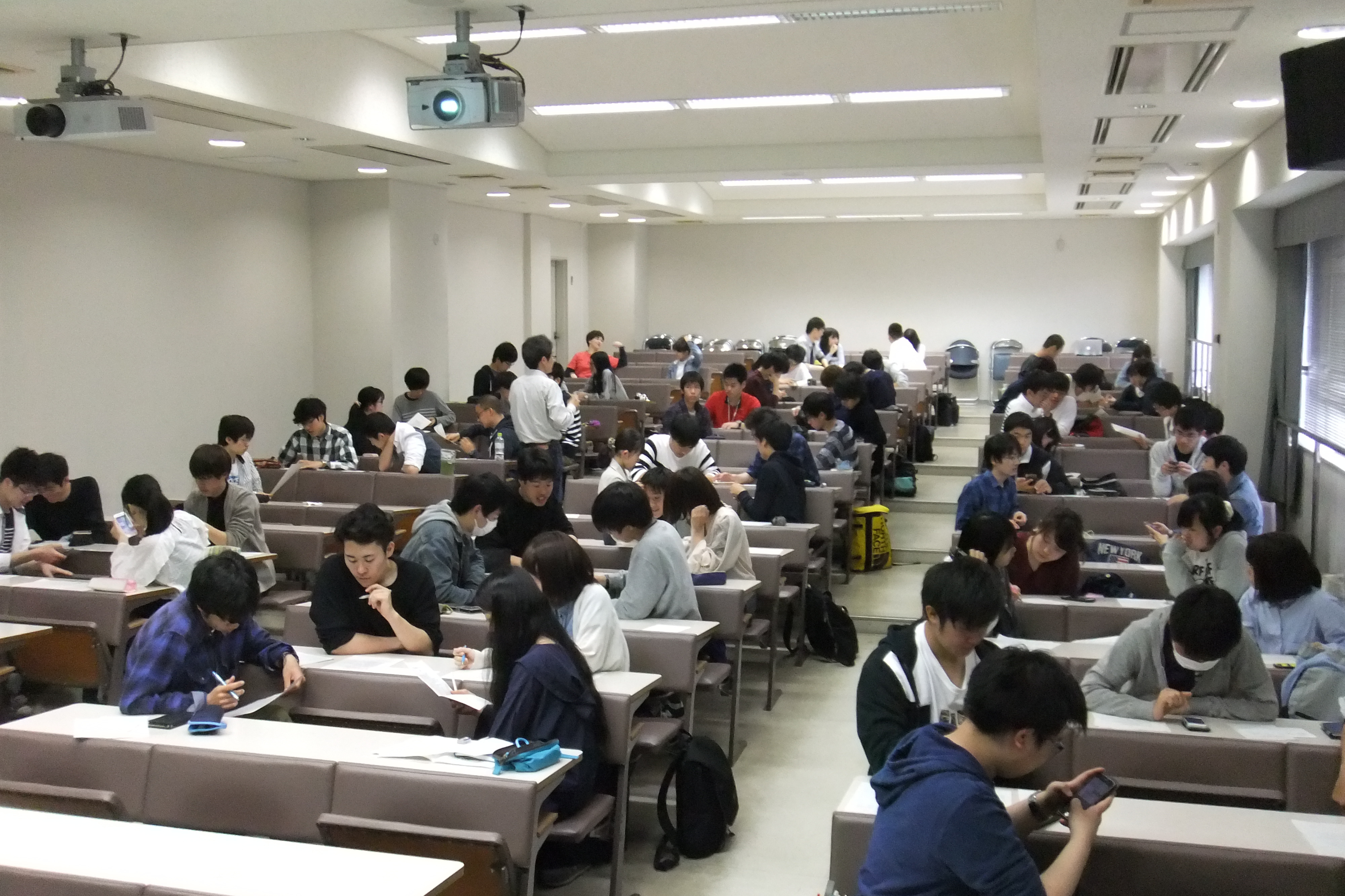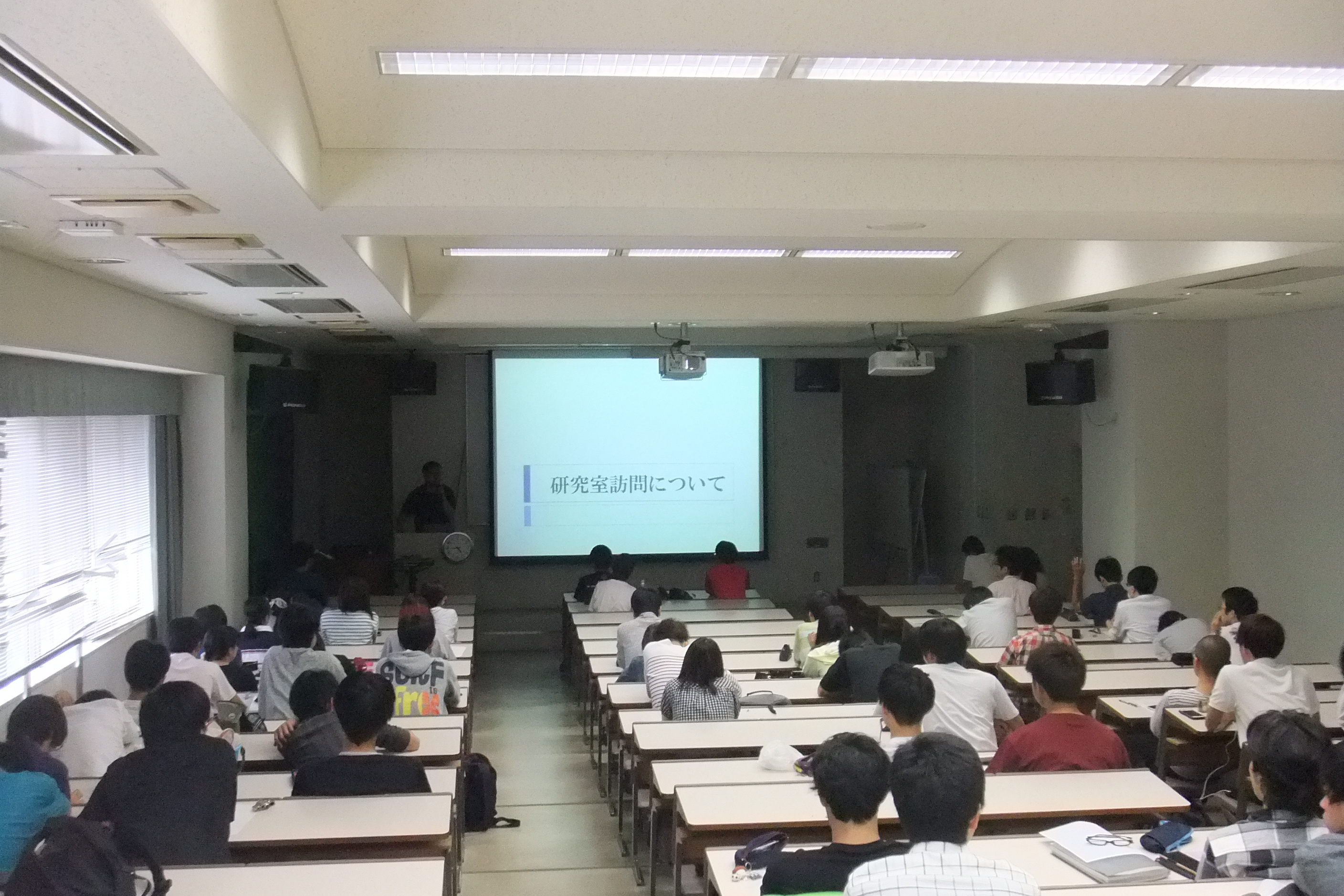 授業の前半では、大学実習・野外実習の振り返りを行ない、実習や基礎セミナーのアンケート調査を行いました。授業の後半では、次週から始まる研究室訪問についての目的や実施方法・レポートの提出方法についての説明がありました。