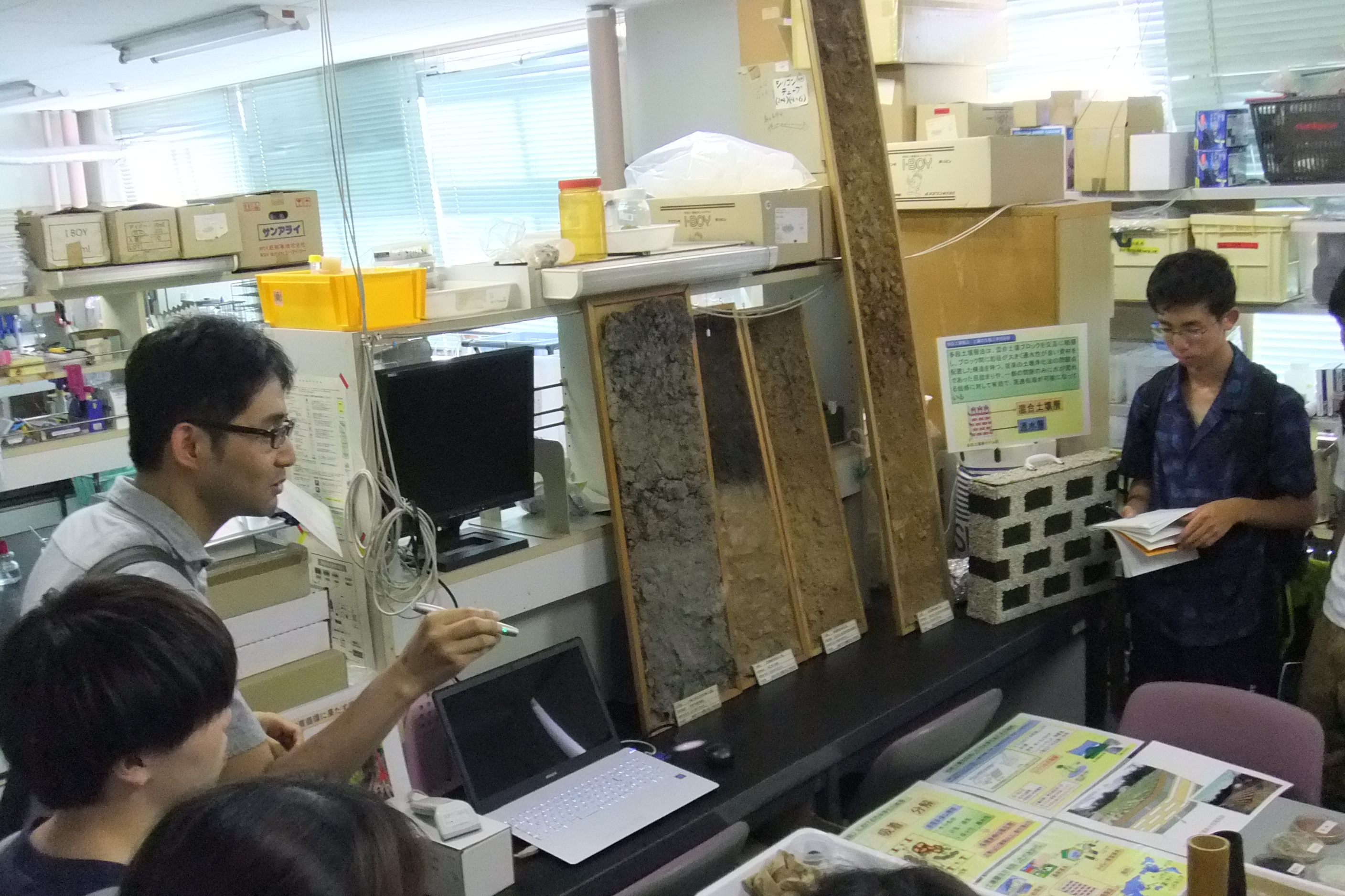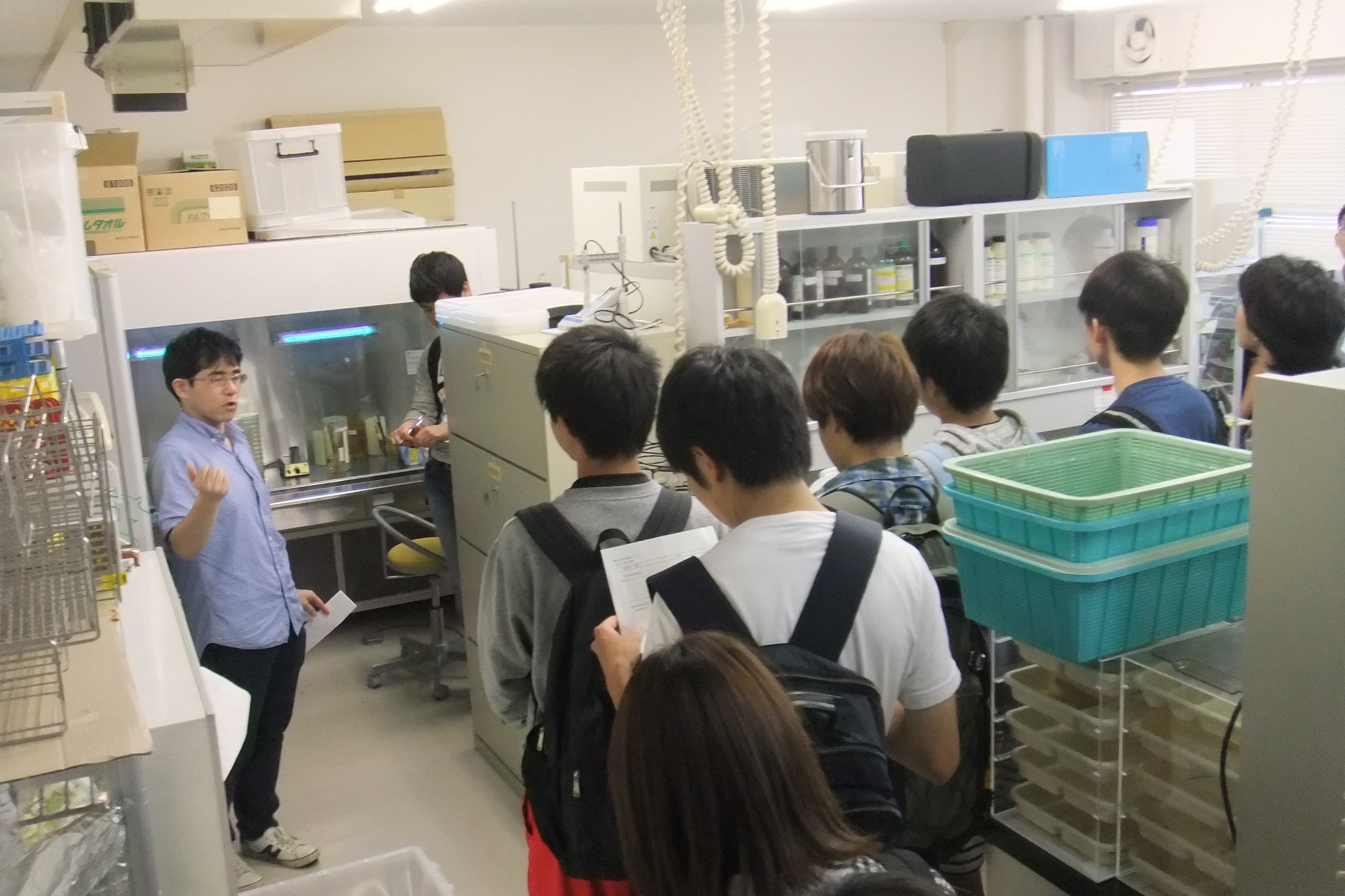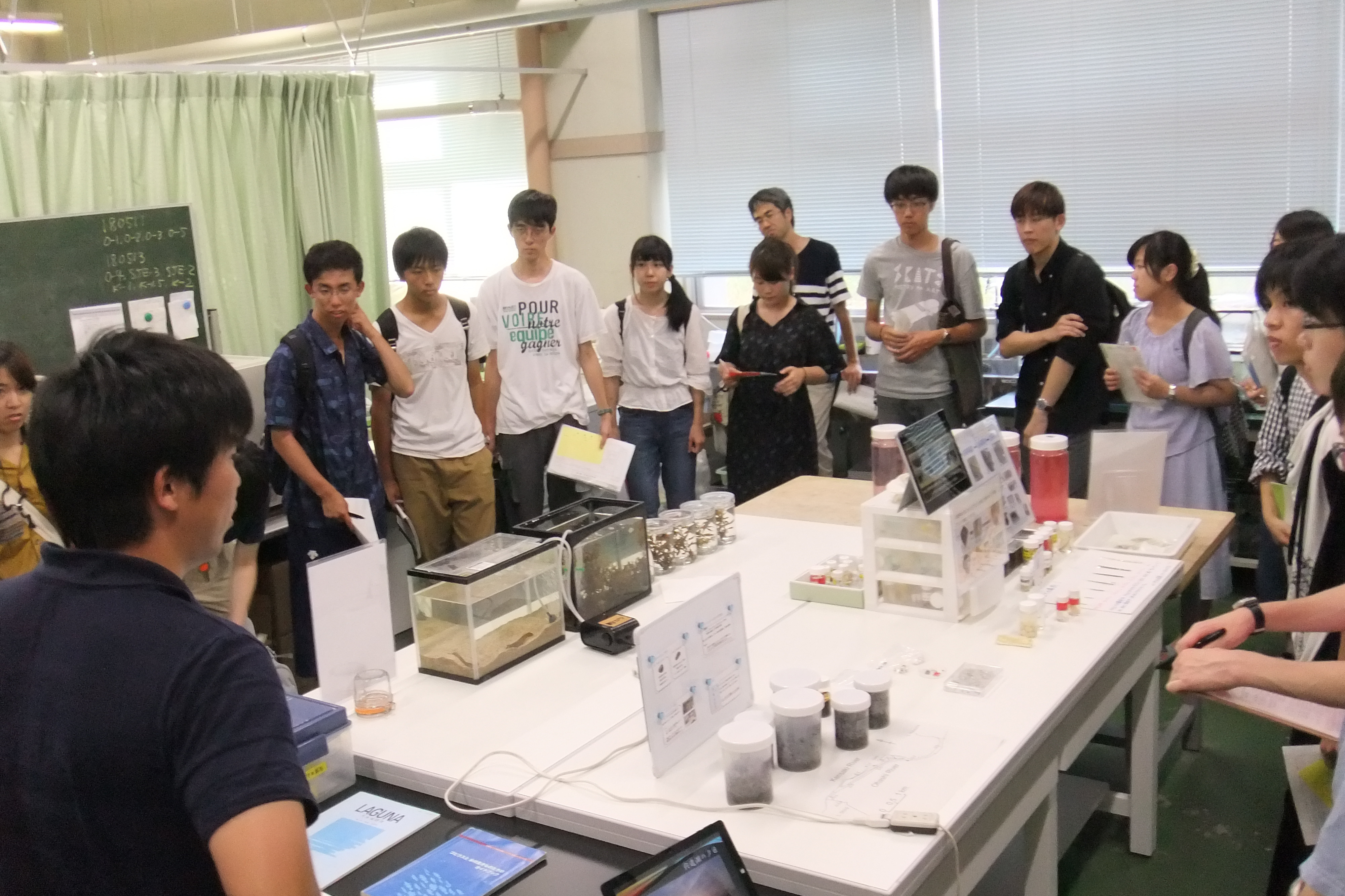 3回目は、4つのグループに分かれて、土壌圏生態工学研究室、水圏生態工学研究室、屋上緑化・環境化学・最適化研究室を訪問しました。パネルやポスターによる研究紹介と各実験室の見学が行われました。