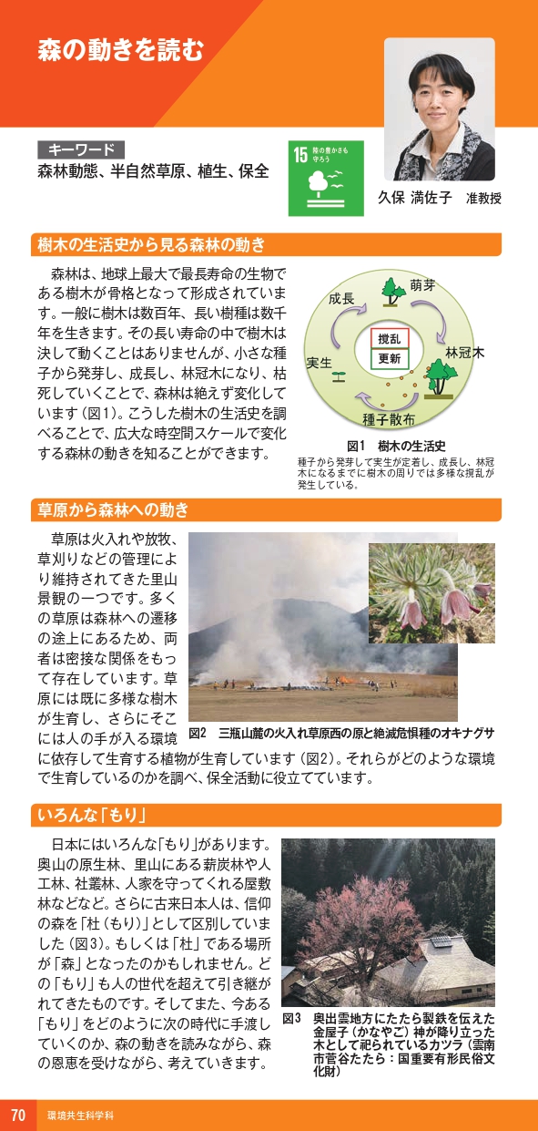| 久保 満佐子 准教授(教員紹介) | 渓畔林の動態、半自然草原の管理 |